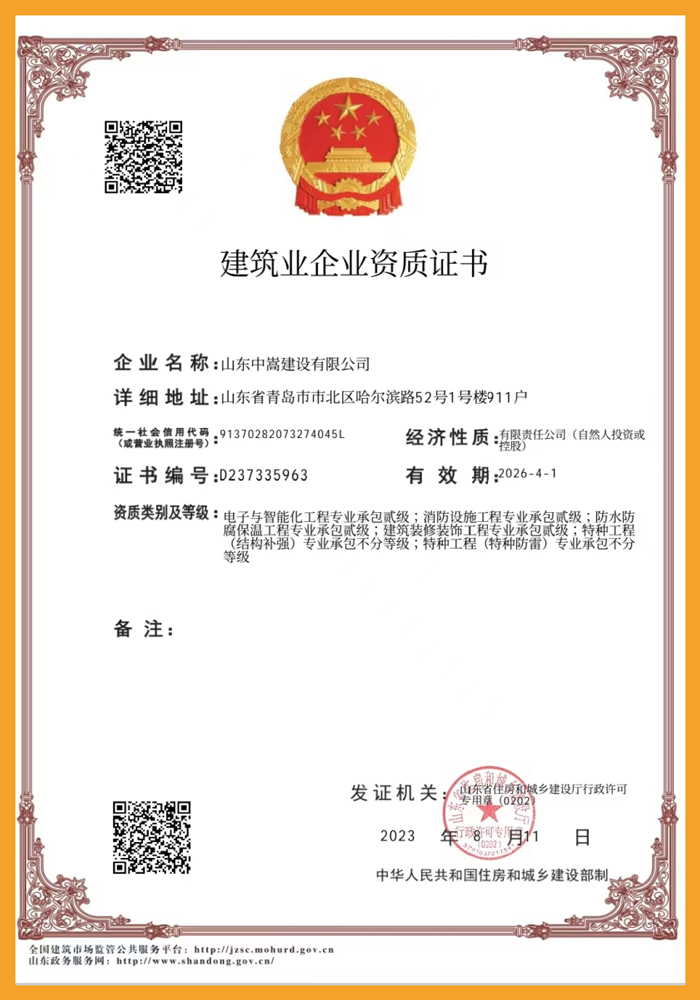 • 建筑業(yè)企業(yè)資質(zhì)證書(省)