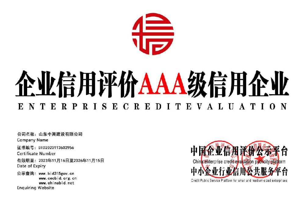 • 企業(yè)信用評(píng)價(jià)AAA級(jí)信用企業(yè)