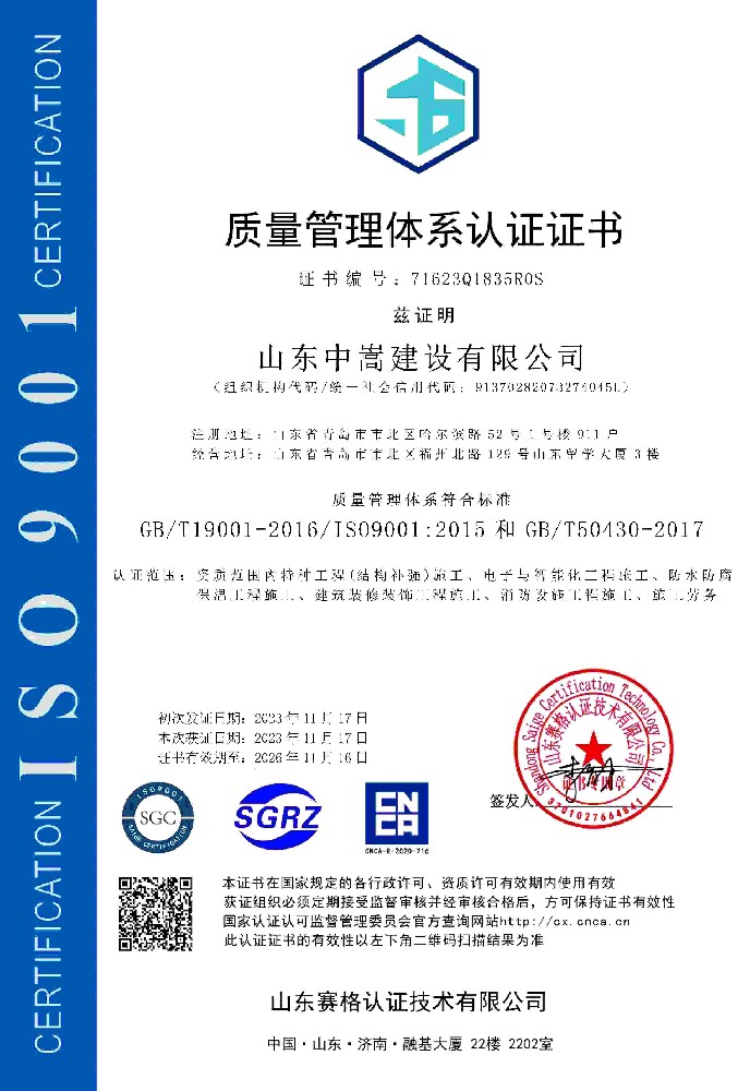 山東中嵩建設(shè)有限公司以建筑勞務(wù)施工為根本,專業(yè)從事特種工程、建筑裝修裝飾工程、電子與智能化工程、結(jié)構(gòu)補(bǔ)強(qiáng)加固工程等技術(shù)服務(wù)為主業(yè)的綜合性、多元化建筑公司。自2013年發(fā)展至今,山東中嵩憑借自身雄厚實(shí)力和良好的信譽(yù)保障,相繼完成了加固改造...